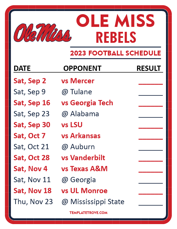 Keep up with Ole Miss Rebels Football in the 2023 season with our