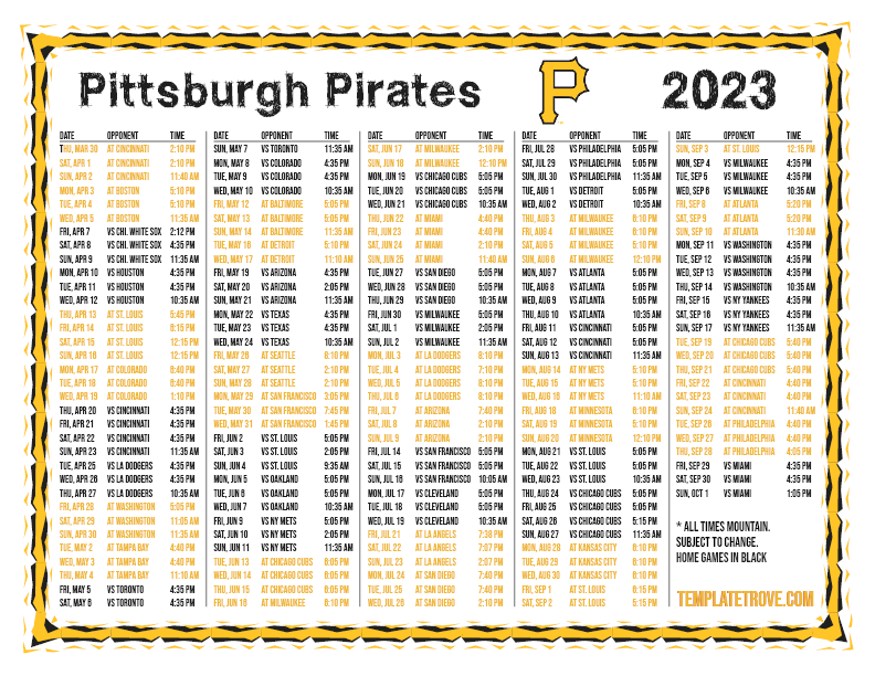 Keep up with the 2023 Pittsburgh Pirates with our handy printable schedules, now available for each US time zone.