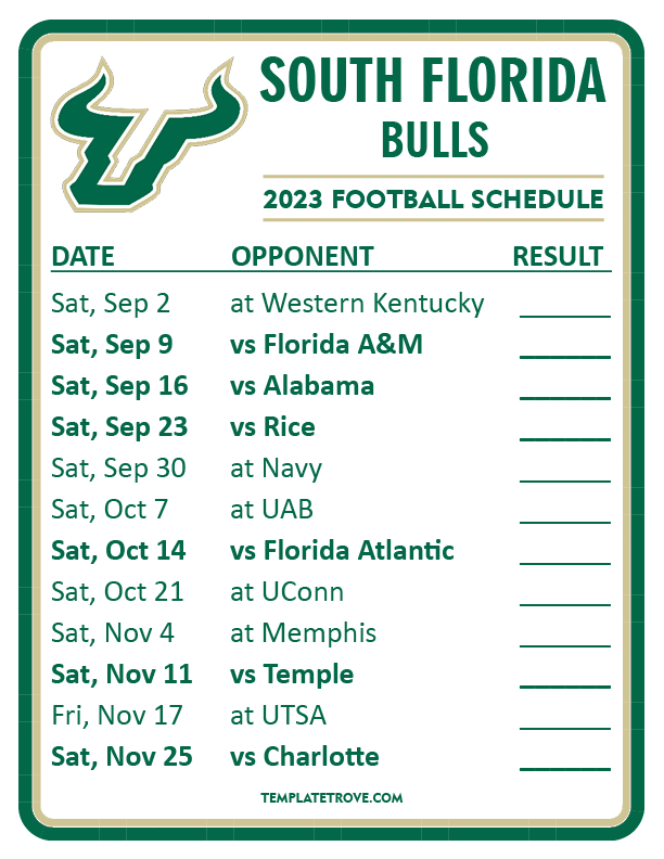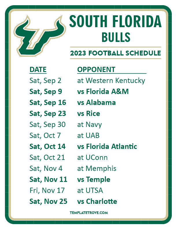 Keep up with South Florida Bulls Football in the 2023 season with our