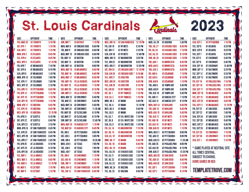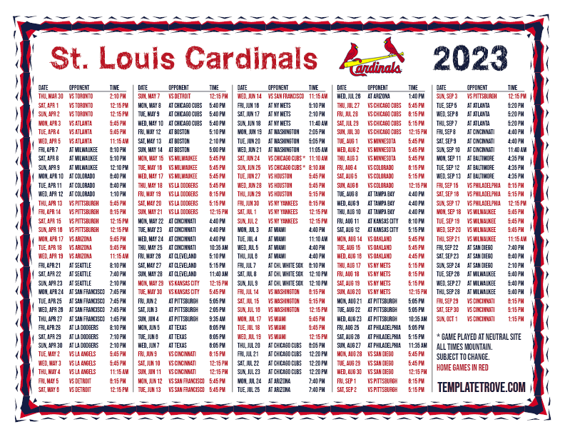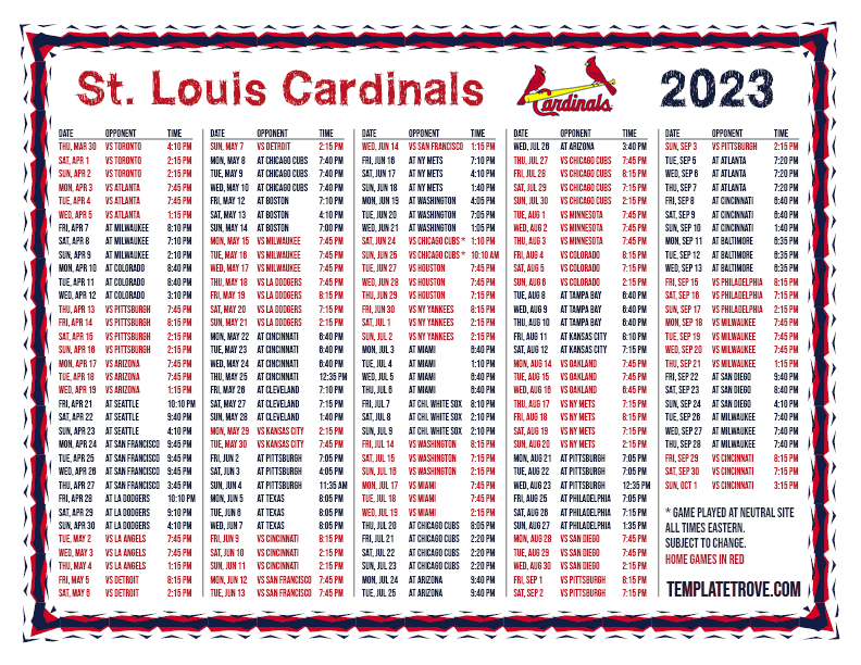 Keep up with the 2023 St. Louis Cardinals with our handy printable schedules, now available for each US time zone.