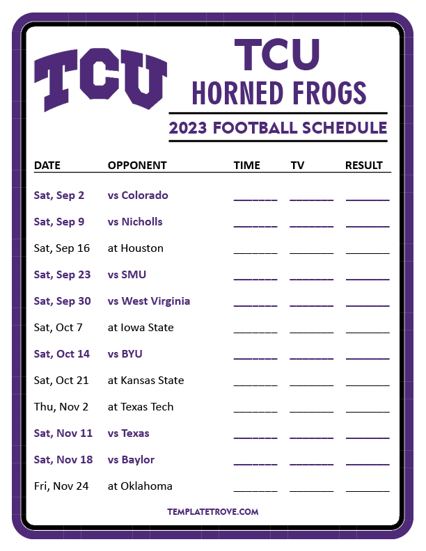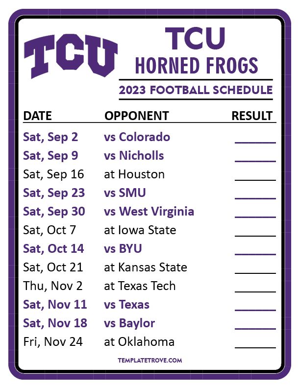 Keep up with TCU Horned Frogs Football in the 2023 season with our