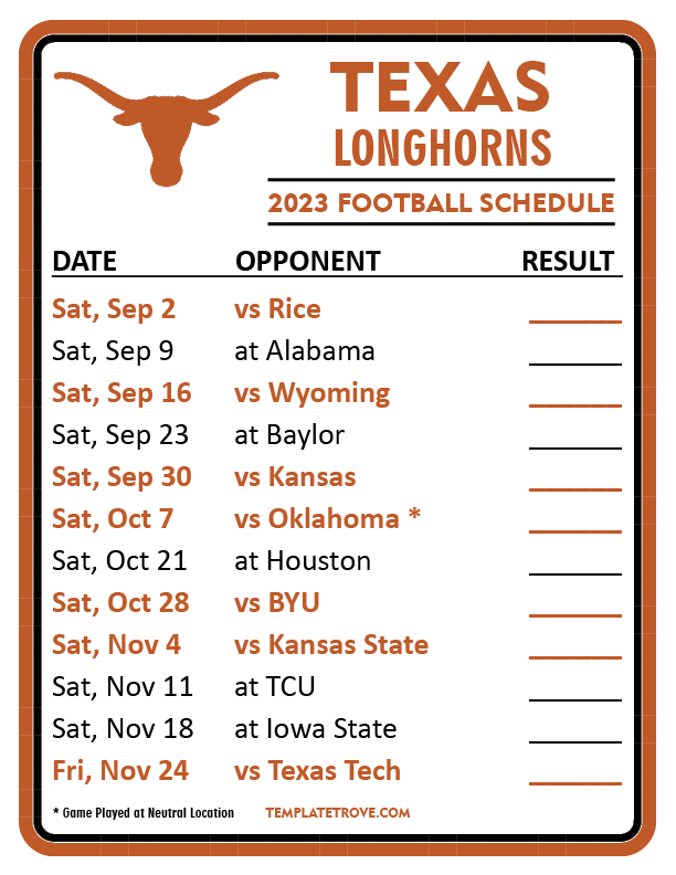 Keep up with Texas Longhorns Football in the 2023 season with our