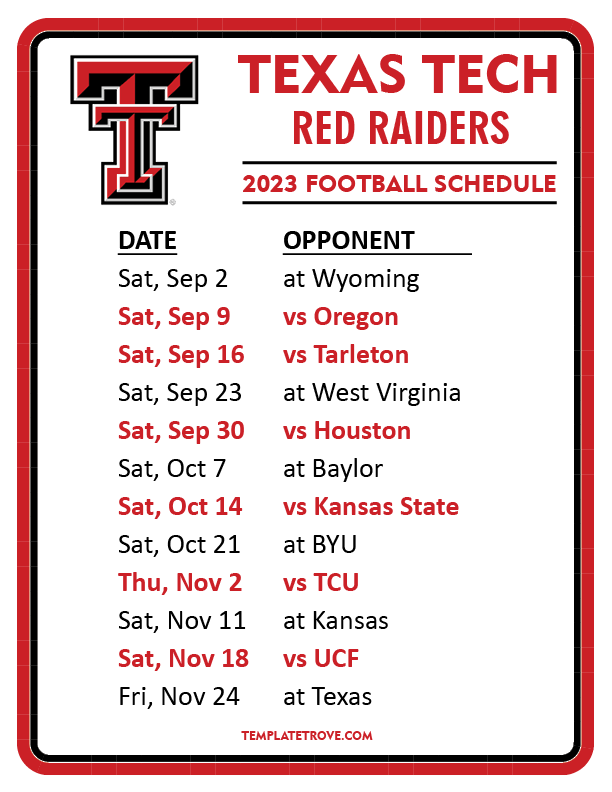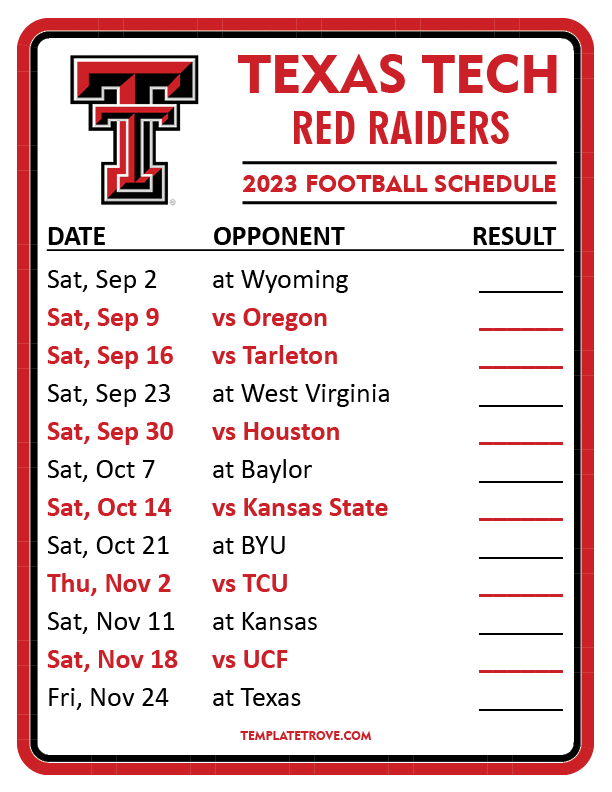 Keep up with Texas Tech Red Raiders Football in the 2023 season with our