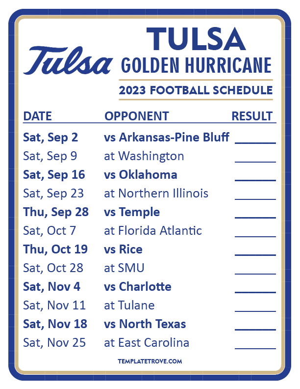 Keep up with Tulsa Golden Hurricane Football in the 2023 season with our
