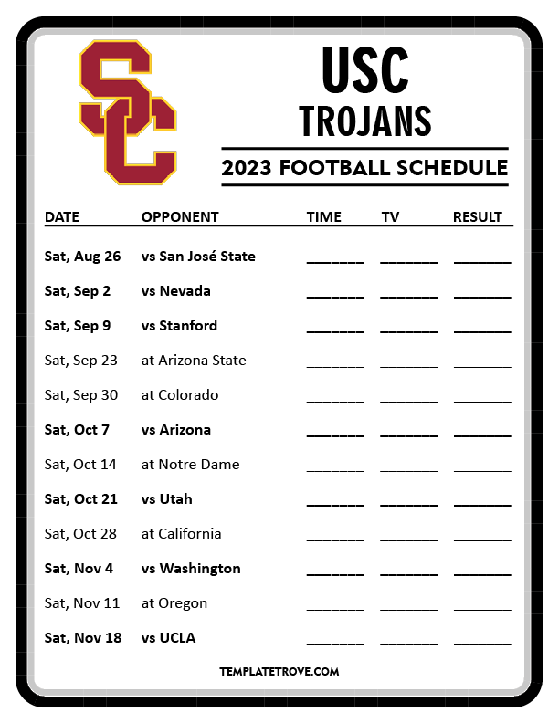 If you get a chance, please share the schedules through social media with your fellow Trojan Fans. It's easy, and it would help us out a bunch, just click one of the social share buttons at the right of the screen on desktop or the black share button at the bottom right on mobile phones.