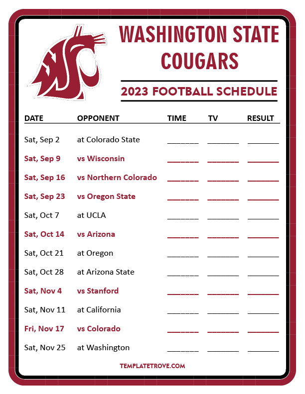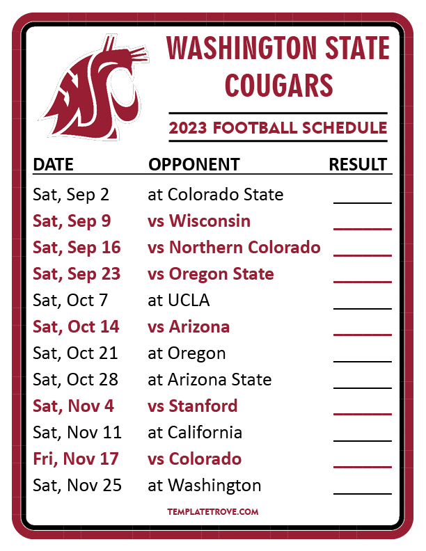 Keep up with Washington State Cougars Football in the 2023 season with our