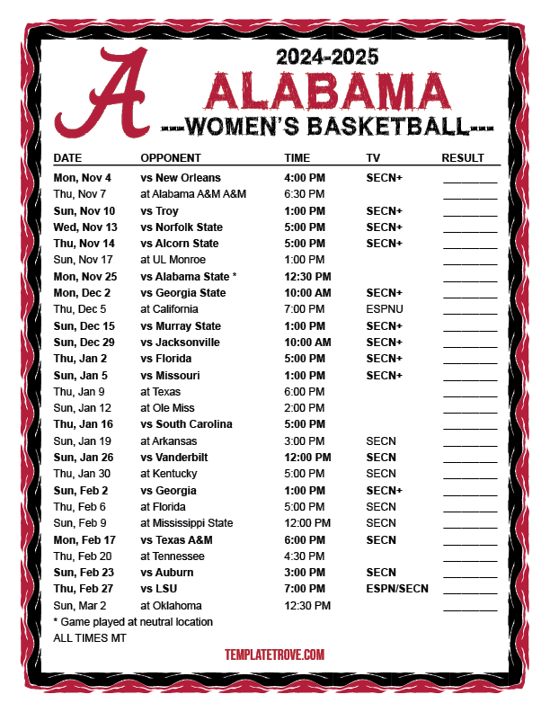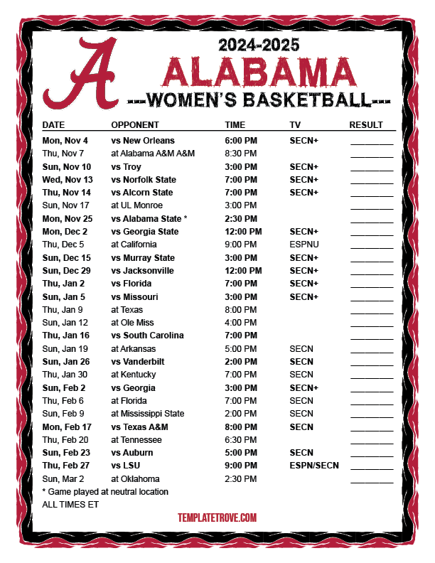 Keep up with the Alabama Crimson Tide Women's Basketball in the 2024-25 season with our