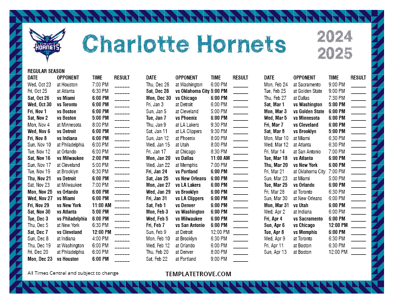 Keep up with the Charlotte Hornets in the 2024-25 season with our