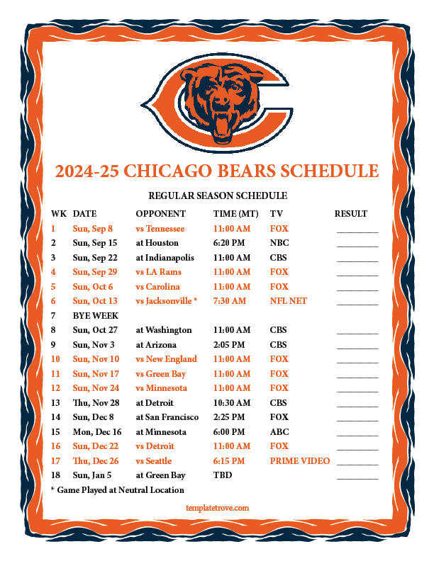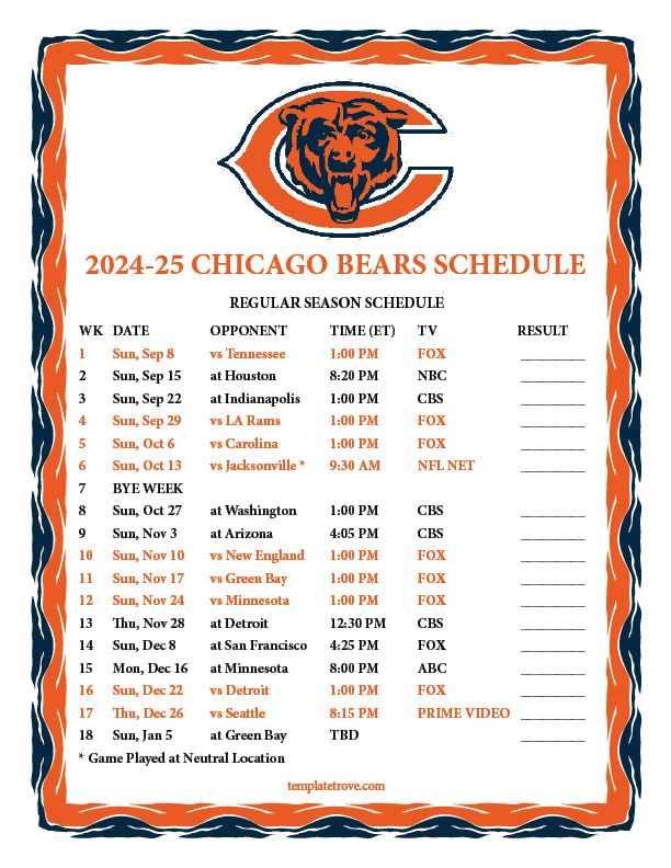 If you get a chance, please share the schedules through social media with your fellow Bears Fans. It's easy, and it would help us out a bunch, just click one of the social share buttons at the right of the screen on desktop or the black share button at the bottom right on mobile phones.