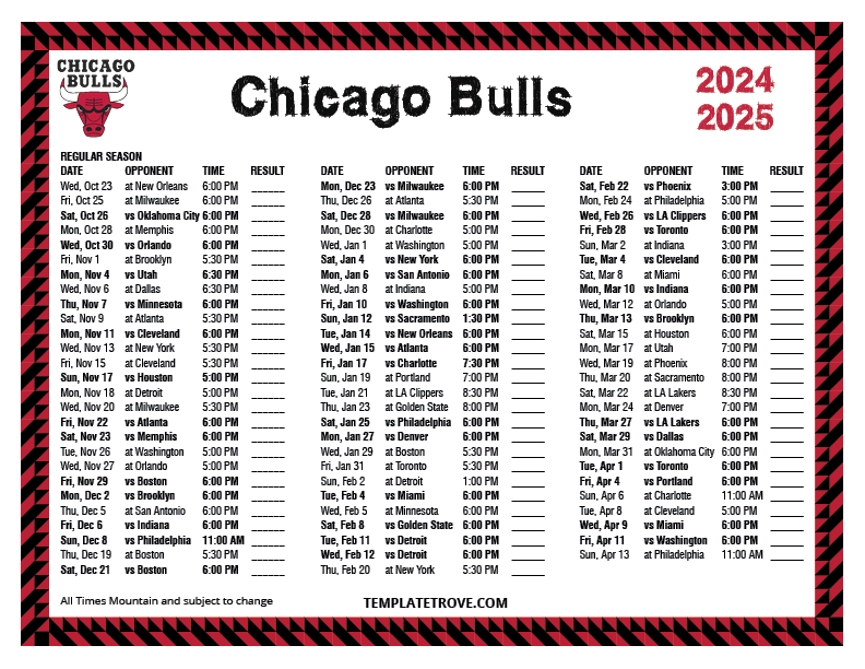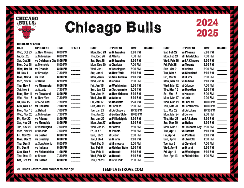 Keep up with the Chicago Bulls in the 2024-25 season with our