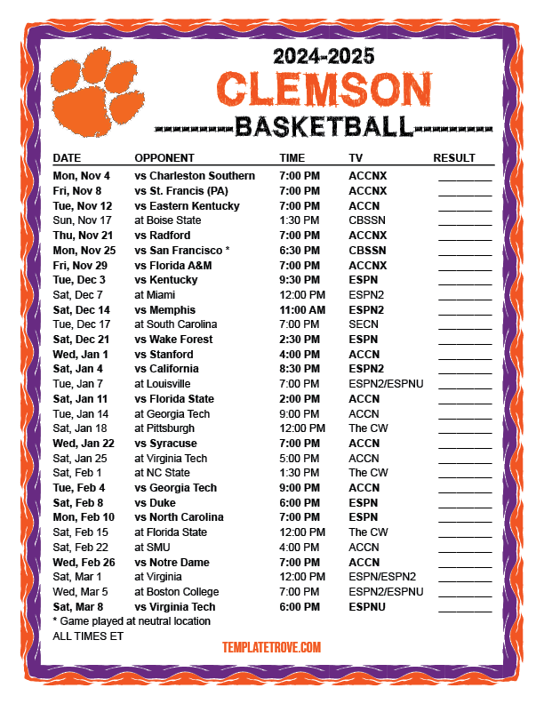Keep up with the Clemson Tigers basketball in the 2024-25 season with our