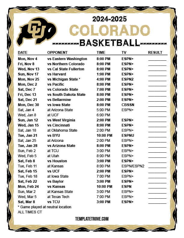 Keep up with the Colorado Buffaloes basketball in the 2024-25 season with our