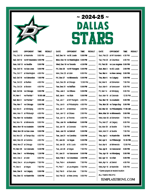 Keep up with the Dallas Stars in the 2024-25 season with our