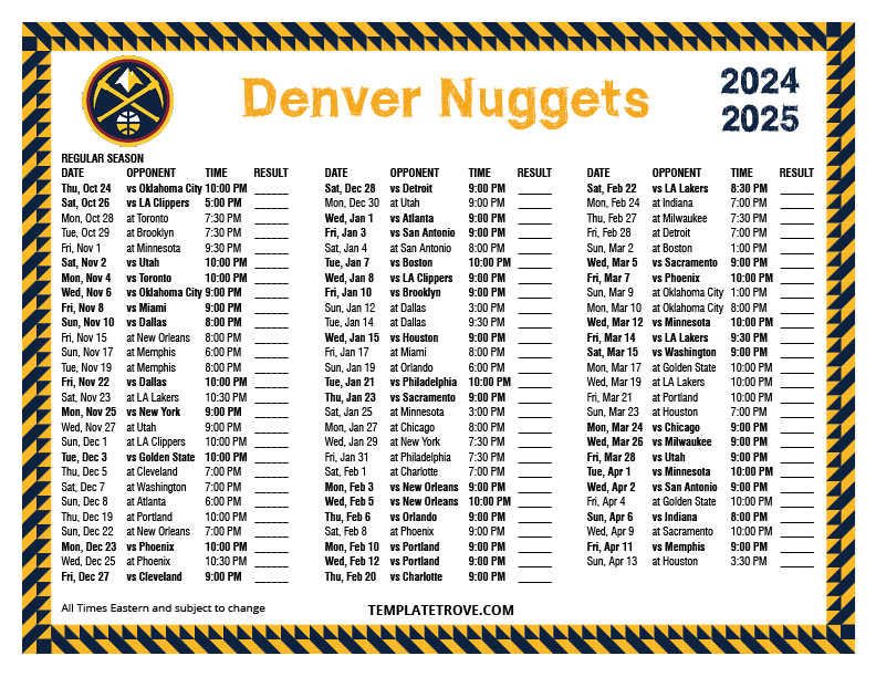 Keep up with the Denver Nuggets in the 2024-25 season with our