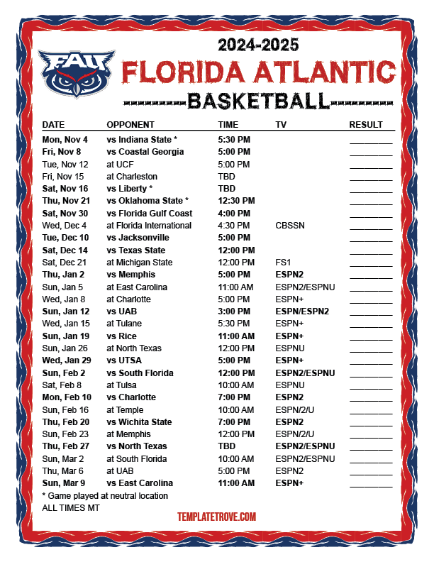 Keep up with the Florida Atlantic Owls basketball in the 2024-25 season with our