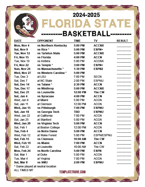 Keep up with the Florida State Seminoles basketball in the 2024-25 season with our