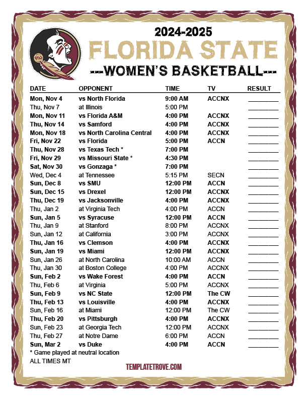 Keep up with the Florida State Seminoles Women's Basketball in the 2024-25 season with our