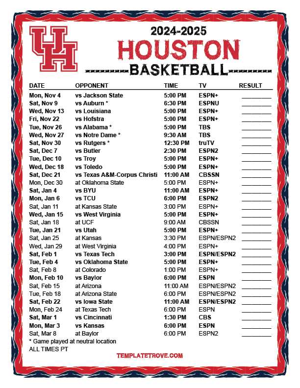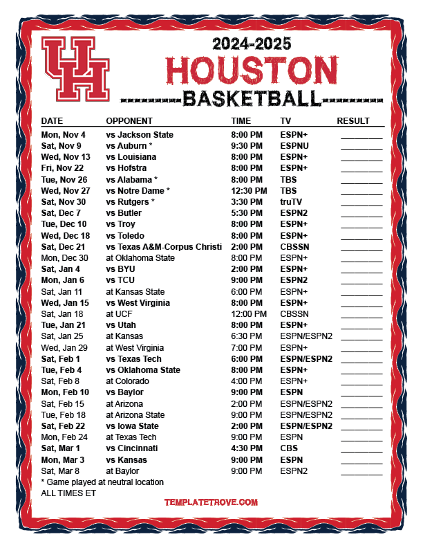 Keep up with the Houston Cougars basketball in the 2024-25 season with our