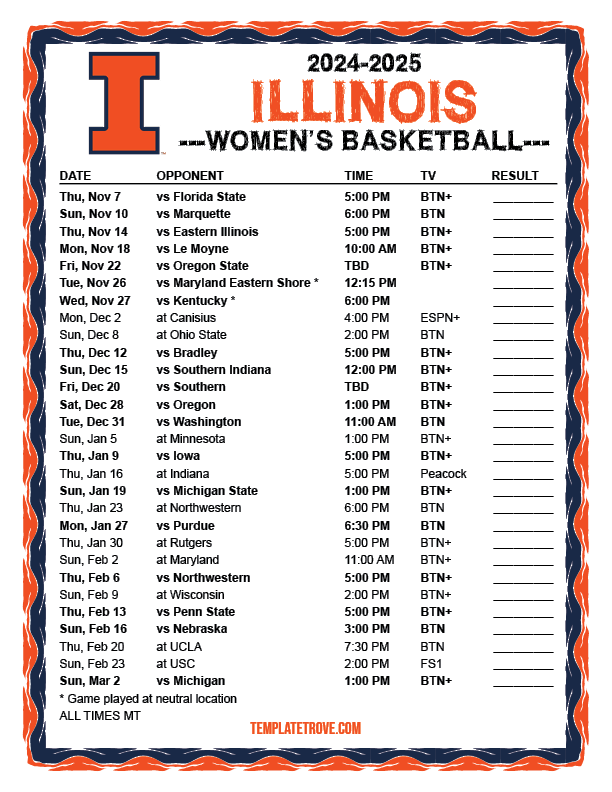 Keep up with the Illinois Fighting Illini Women's Basketball in the 2024-25 season with our