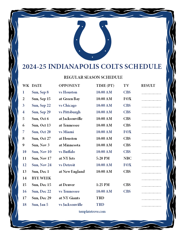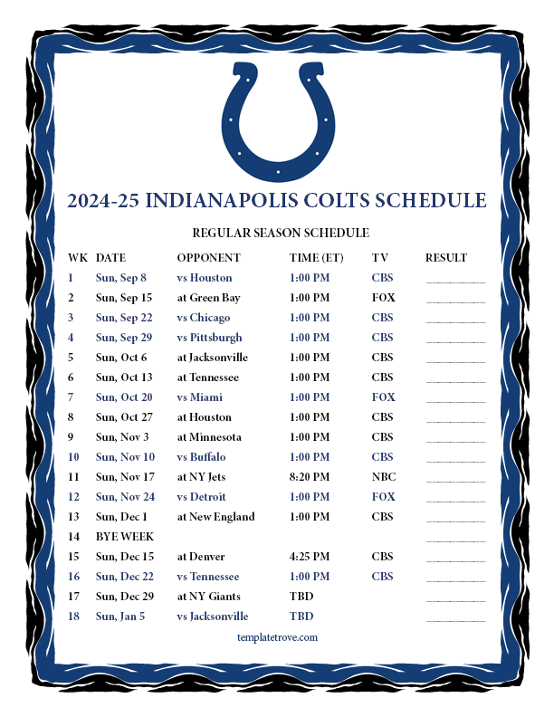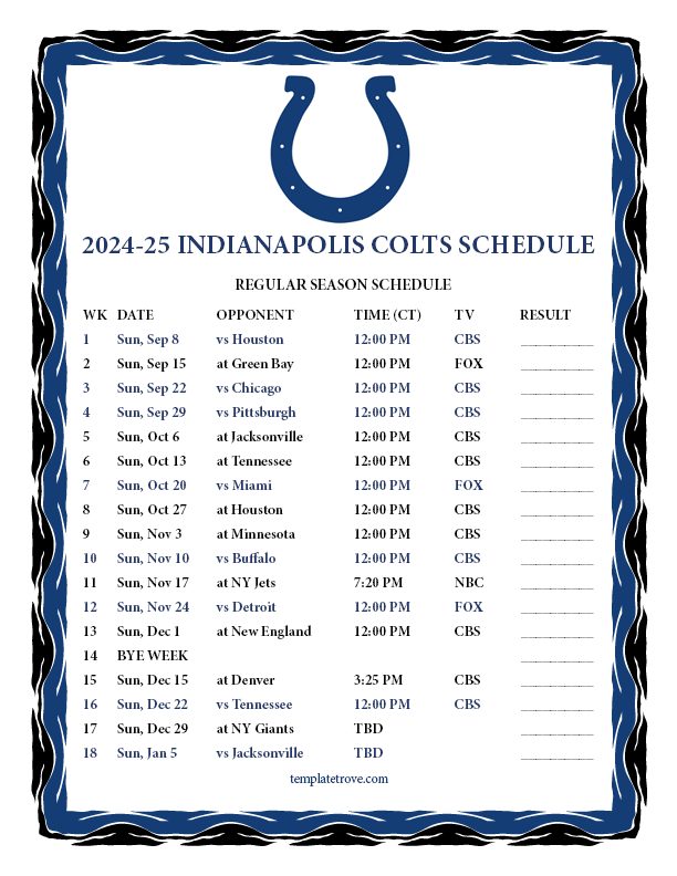If you get a chance, please share the schedules through social media with your fellow Colts Fans. It's easy, and it would help us out a bunch, just click one of the social share buttons at the right of the screen on desktop or the black share button at the bottom right on mobile phones.