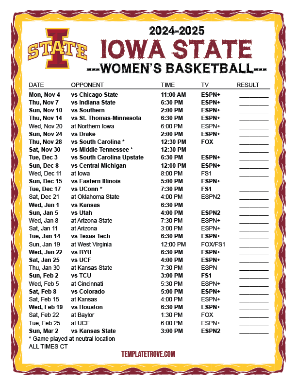 Keep up with the Iowa State Cyclones Women's Basketball in the 2024-25 season with our