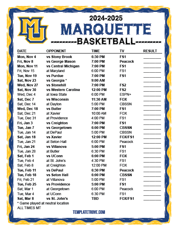 Keep up with the Marquette Golden Eagles basketball in the 2024-25 season with our