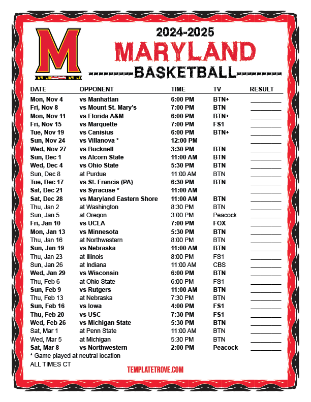 Keep up with the Maryland Terrapins basketball in the 2024-25 season with our