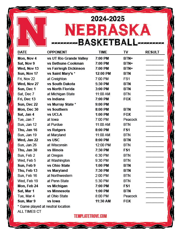 Keep up with the Nebraska Cornhuskers basketball in the 2024-25 season with our