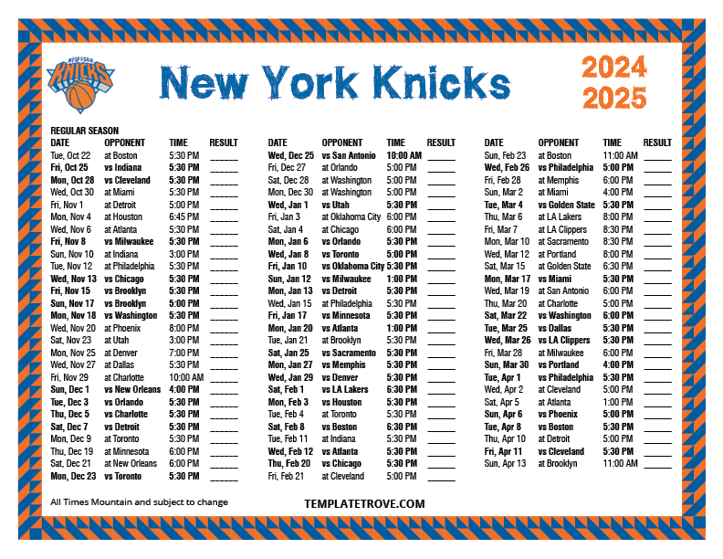 Keep up with the New York Knicks in the 2024-25 season with our