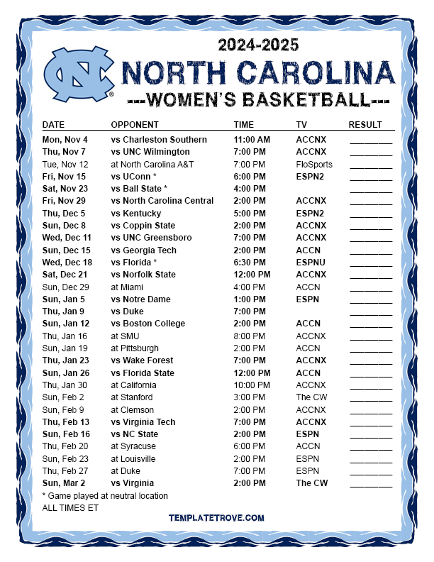 Keep up with the North Carolina Tar Heels Women's Basketball in the 2024-25 season with our