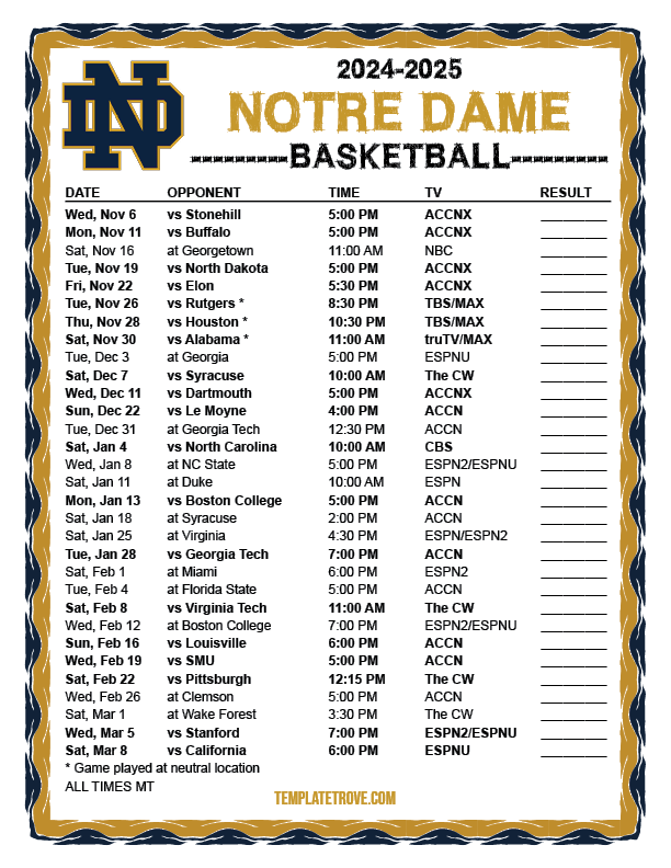 Keep up with the Notre Dame Fighting Irish basketball in the 2024-25 season with our