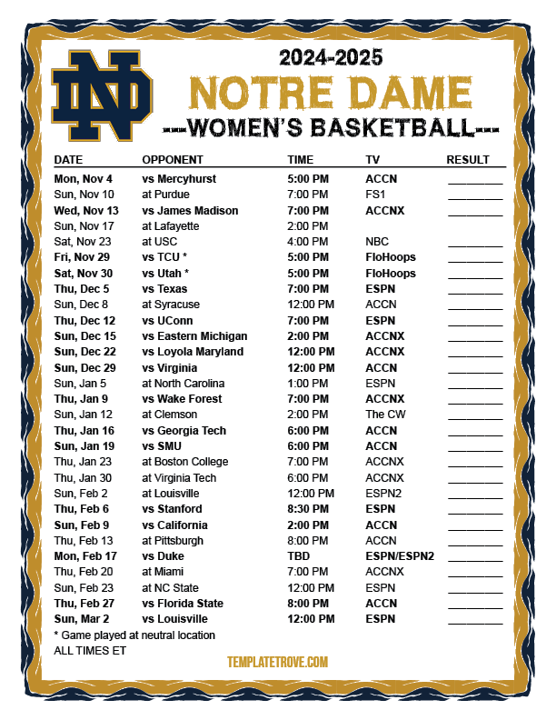 Keep up with the Notre Dame Fighting Irish Women's Basketball in the 2024-25 season with our