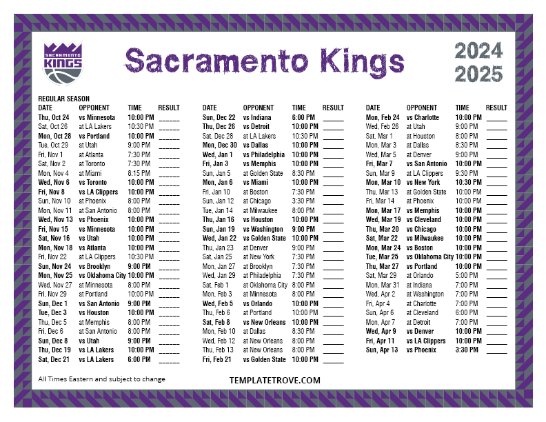 Keep up with the Sacramento Kings in the 2024-25 season with our
