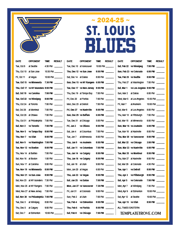 Keep up with the St. Louis Blues in the 2024-25 season with our