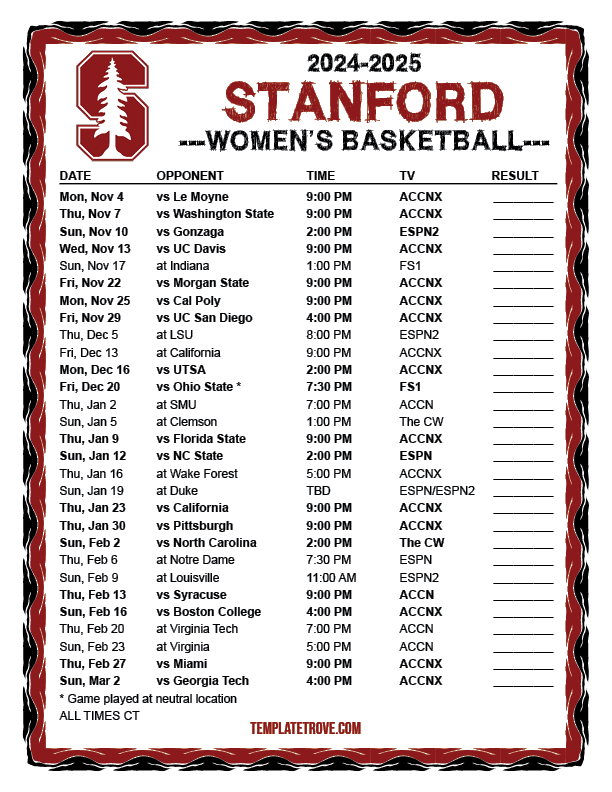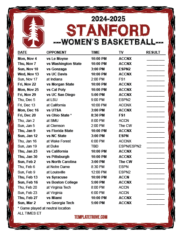 Keep up with the Stanford Cardinal Women's Basketball in the 2024-25 season with our