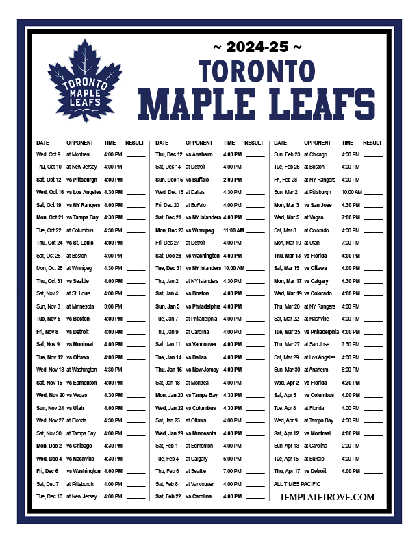 Keep up with the Toronto Maple Leafs in the 2024-25 season with our