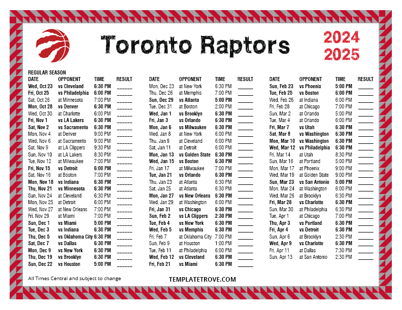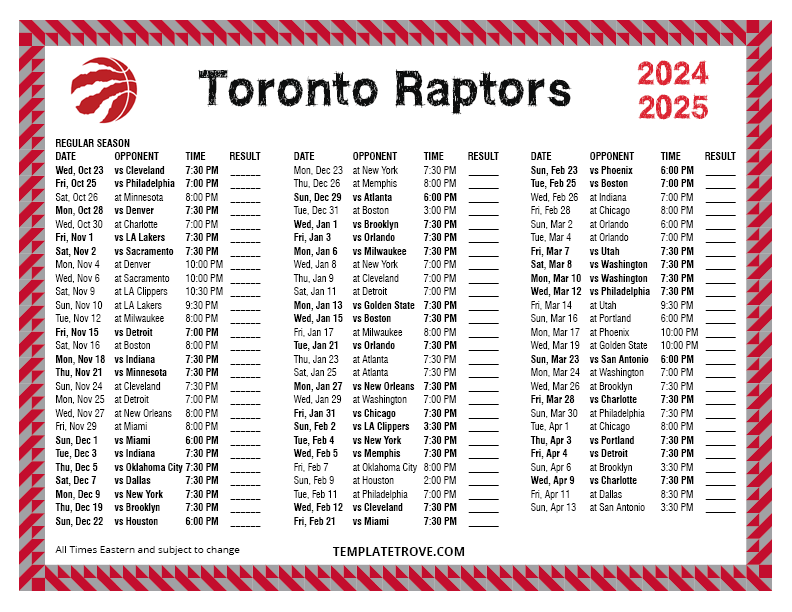 Keep up with the Toronto Raptors in the 2024-25 season with our