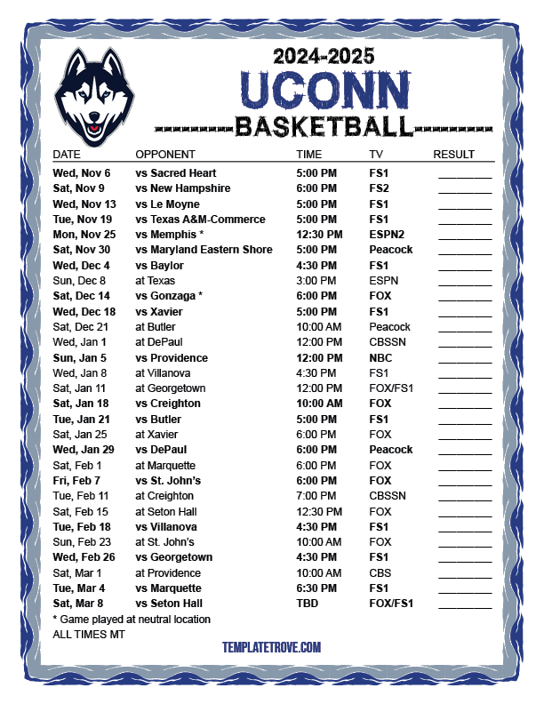 Keep up with the UConn Huskies basketball in the 2024-25 season with our