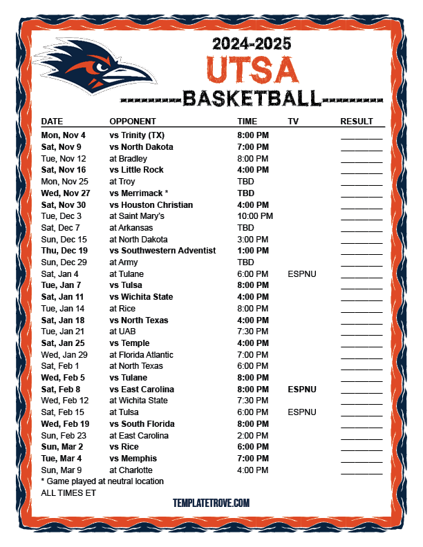 Keep up with the UTSA Roadrunners basketball in the 2024-25 season with our