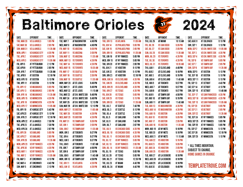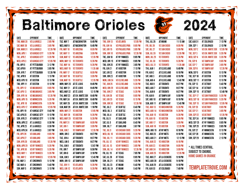 Keep up with the 2024 Baltimore Orioles with our handy printable schedules, now available for each US time zone.