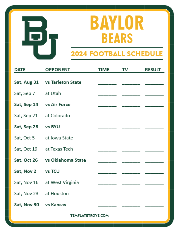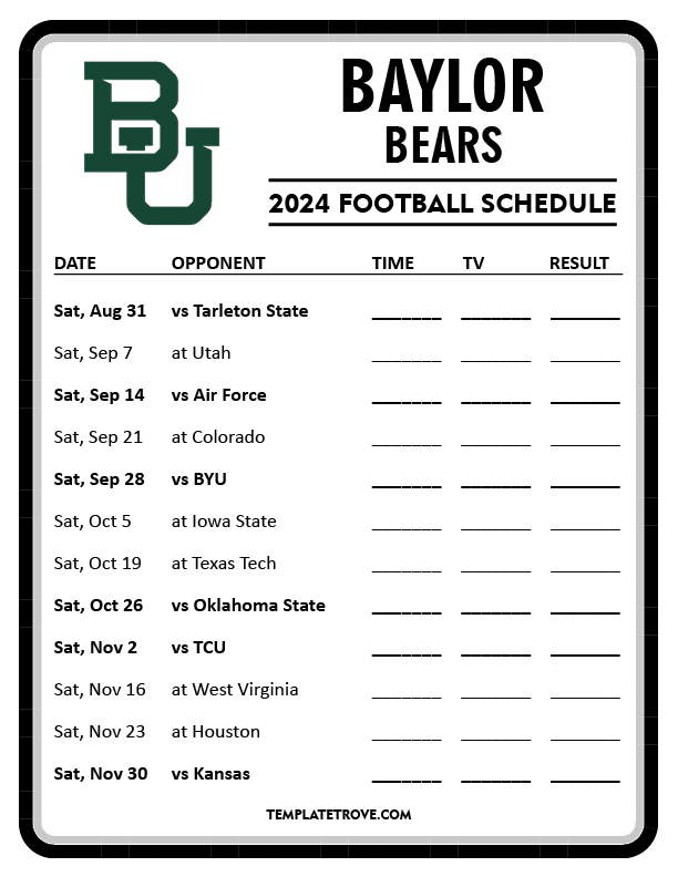 Style 3 - dates and opponents with columns to write in game times, TV network and results