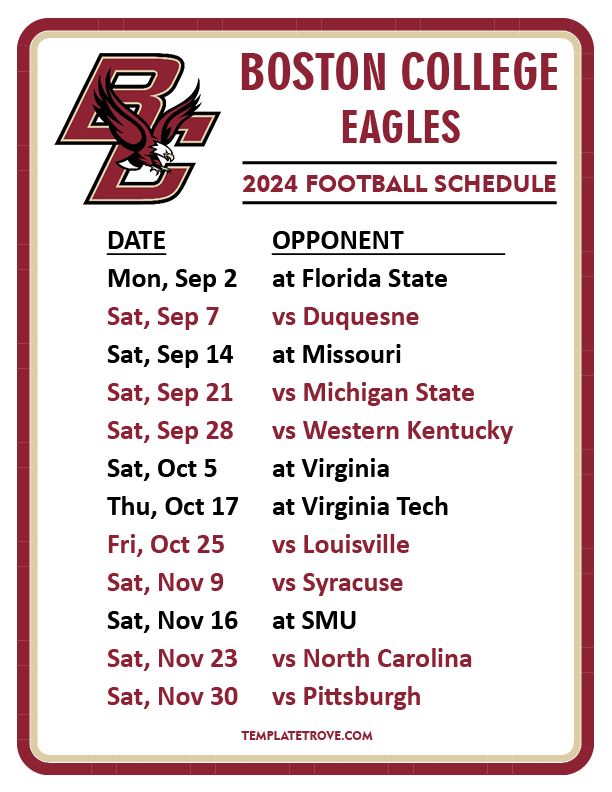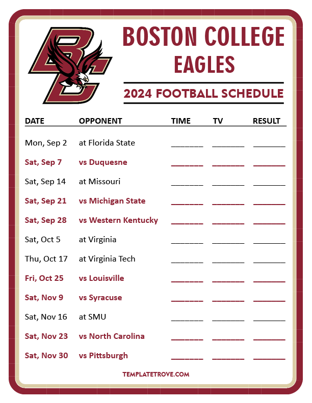 Style 3 - dates and opponents with columns to write in game times, TV network and results