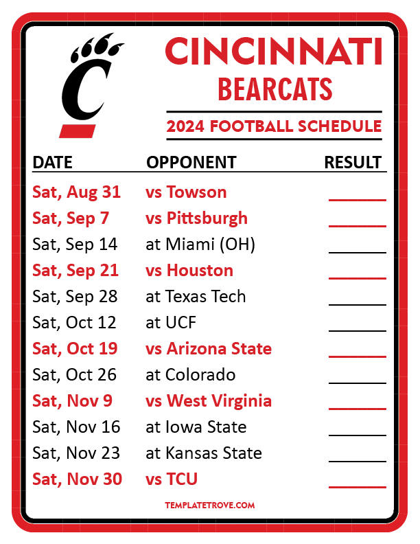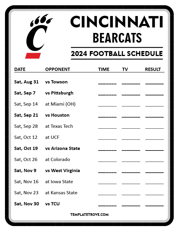 If you get a chance, please share the schedules through social media with your fellow Bearcat Fans. It's easy, and it would help us out a bunch, just click one of the social share buttons at the right of the screen on desktop or the black share button at the bottom right on mobile phones.