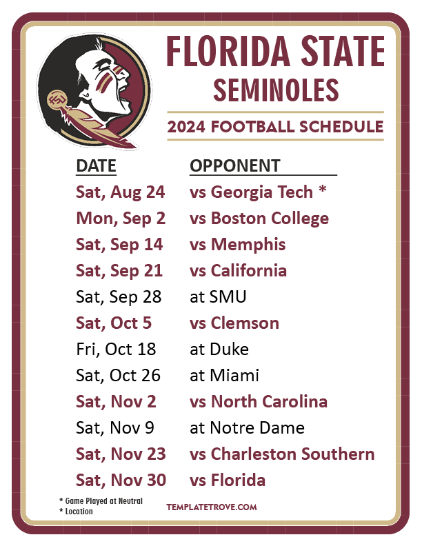 If you get a chance, please share the schedules through social media with your fellow Seminole Fans. It's easy, and it would help us out a bunch, just click one of the social share buttons at the right of the screen on desktop or the black share button at the bottom right on mobile phones.