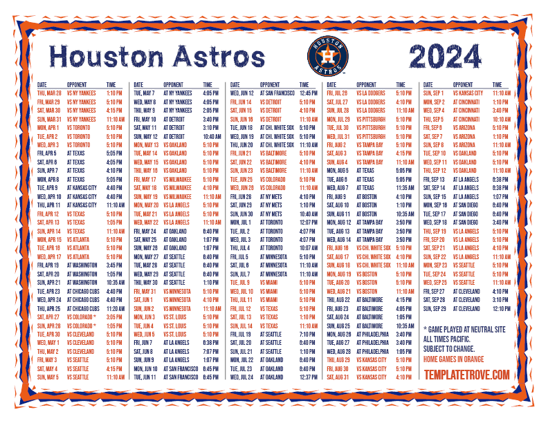Pacific Times 2024 Astros Schedule