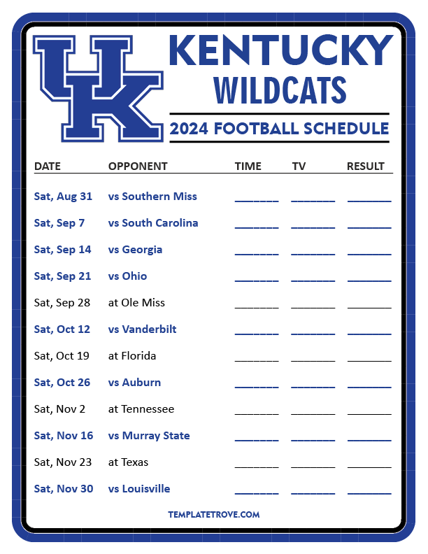 Style 3 - dates and opponents with columns to write in game times, TV network and results