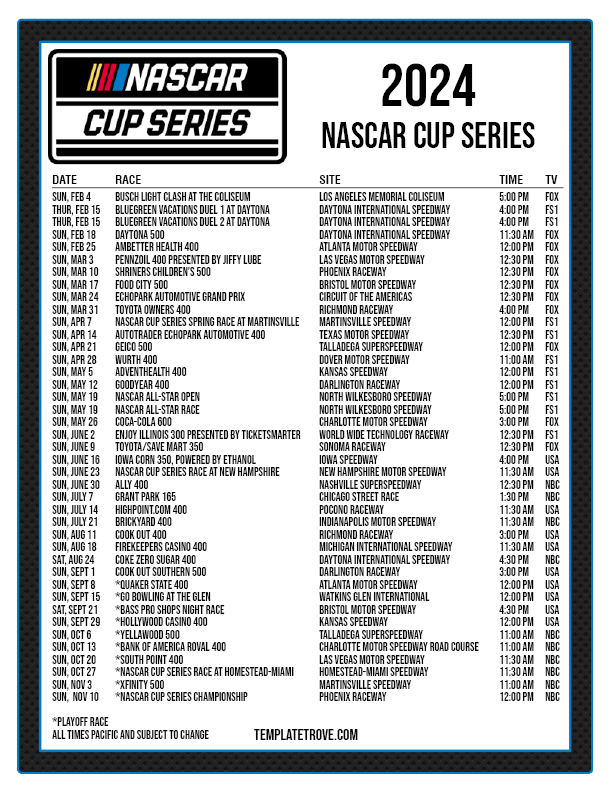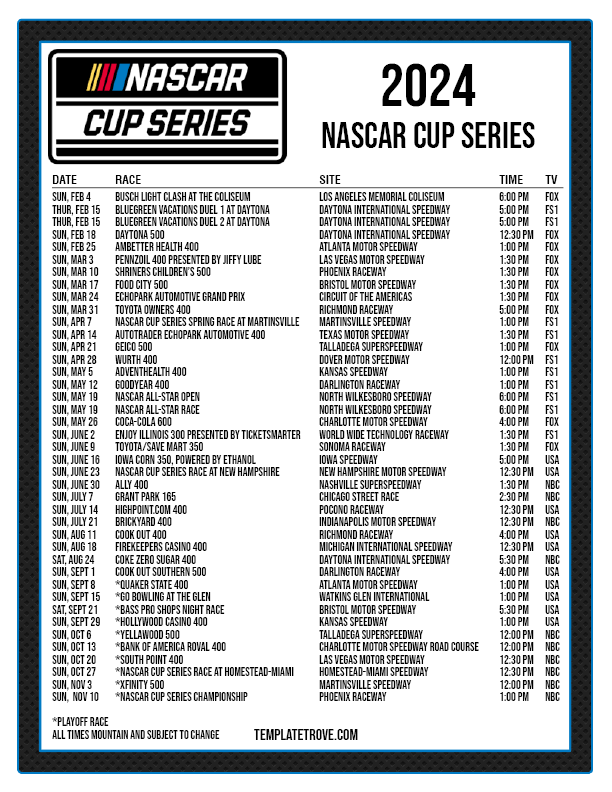 Hey, fellow NASCAR enthusiasts! Time to rev up the excitement and share those race schedules! It's a breeze, and it would mean the world to us. Just tap on the social share buttons to the right on desktop or the cool black share button at the bottom right on mobile. Let's spread the racing fever together! #NASCARFam #RaceDaySharing