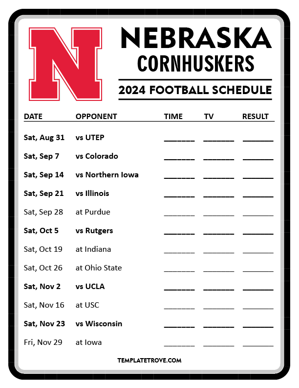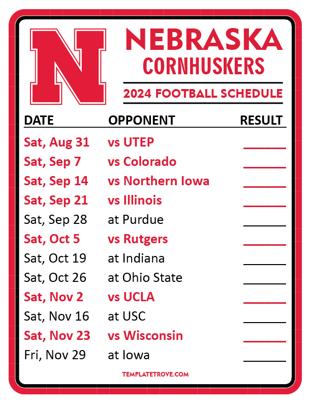 If you get a chance, please share the schedules through social media with your fellow Cornhusker Fans. It's easy, and it would help us out a bunch, just click one of the social share buttons at the right of the screen on desktop or the black share button at the bottom right on mobile phones.