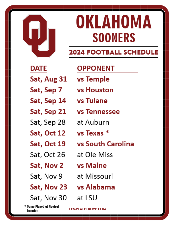 If you get a chance, please share the schedules through social media with your fellow Sooner Fans. It's easy, and it would help us out a bunch, just click one of the social share buttons at the right of the screen on desktop or the black share button at the bottom right on mobile phones.