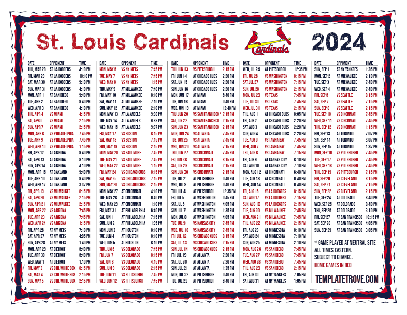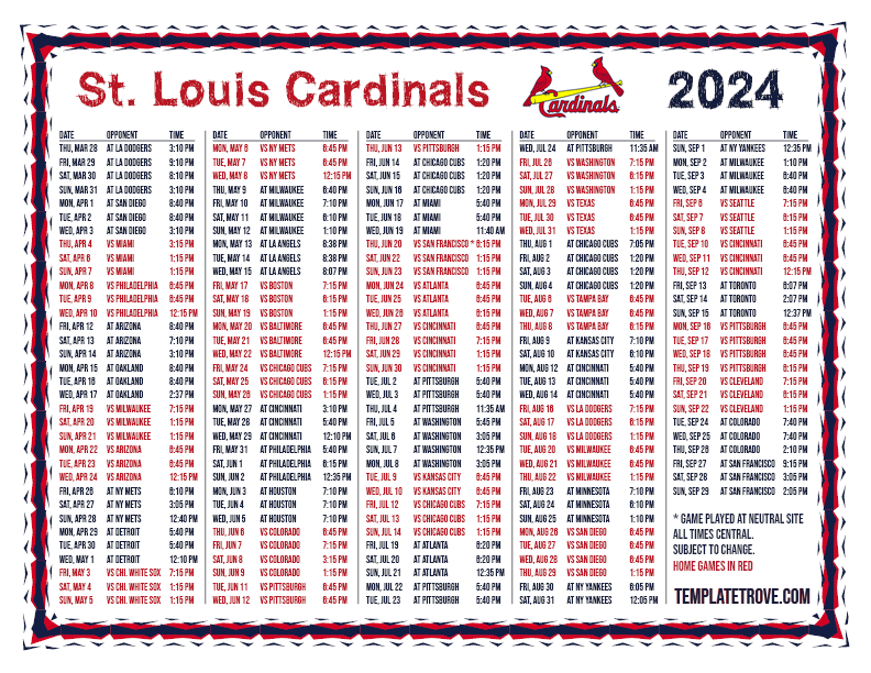 Keep up with the 2024 St. Louis Cardinals with our handy printable schedules, now available for each US time zone.